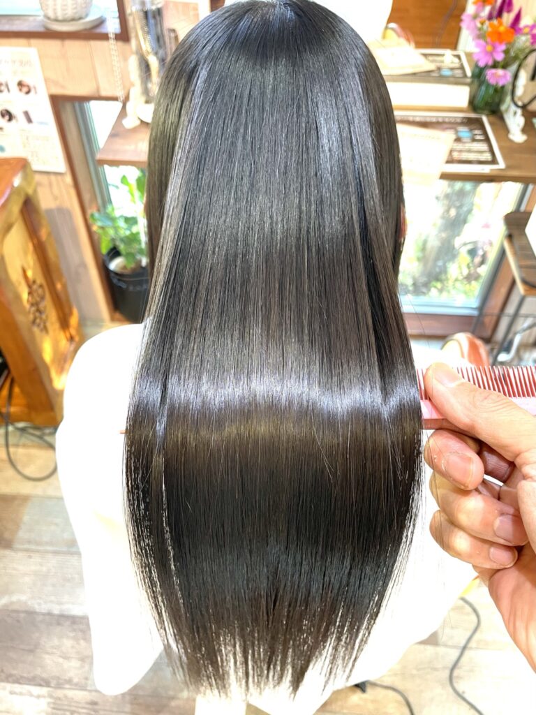 施術後はツヤのあるキレイな髪質を取り戻せますしツヤと潤いを持続させる効果が長続きします。
